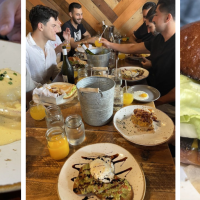 2 eggs over medium, sausage patty, smoked Gouda, sliced tomato and house ranch sandwiched between 2 pancakes!NOTE: add avocado or bacon for additional charge.
